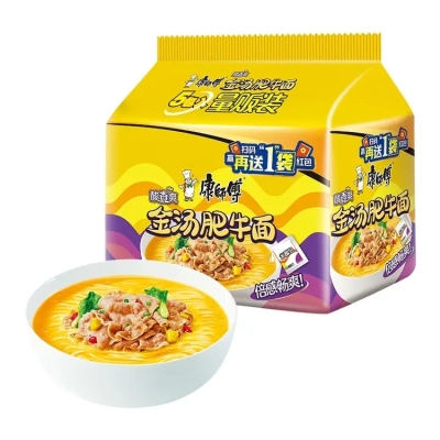 康师傅 方便面 经典酸香爽金汤肥牛面五连包105g*5 泡面袋装 方便食品